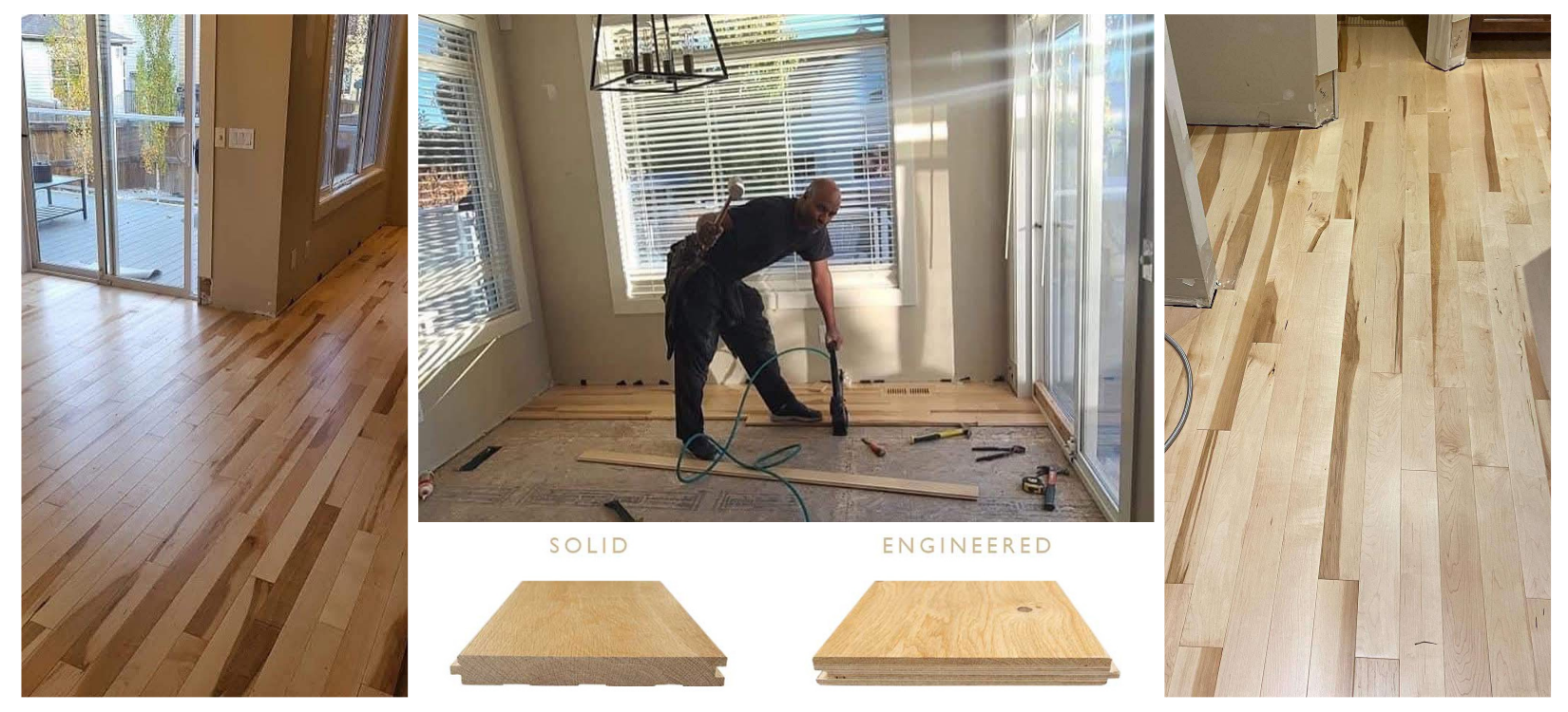 Solid hardwood is crafted from a single, solid piece of wood, offering timeless beauty, durability, and the ability to be sanded and refinished multiple times. It provides a classic, natural look with unique grain patterns and rich textures, making it a popular choice for traditional and high-end interiors. However, solid hardwood is more susceptible to expansion and contraction due to moisture and temperature changes, which can cause warping or gapping over time.